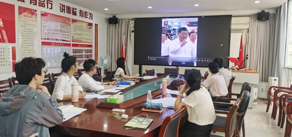 最后,沿着习近平总书记在义乌调研时的足迹,支部党员教师集体观看了“主播说联播丨在总书记考察的这个村子,看到义乌的另一种气质”和“时政现场说丨古村创客”两个视频。每位党员同志结合自身工作,循根溯源学思想促践行,纷纷表示习近平总书记来义乌调研都倍感鼓舞,同时提出接下来的工作要紧随国家战略,敢想敢干敢创,重视调查研究,特别是在科研的过程中要重视将理论与实践相结合,真正将论文写在中国大地上。