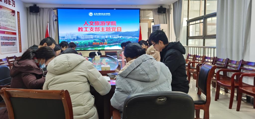 12月25日下午,人文旅游学院教工党支部在人文旅游学院会议室开展主题党日学习活动,学习主题为:攻坚收官谋新篇,砥砺奋进勇争先。