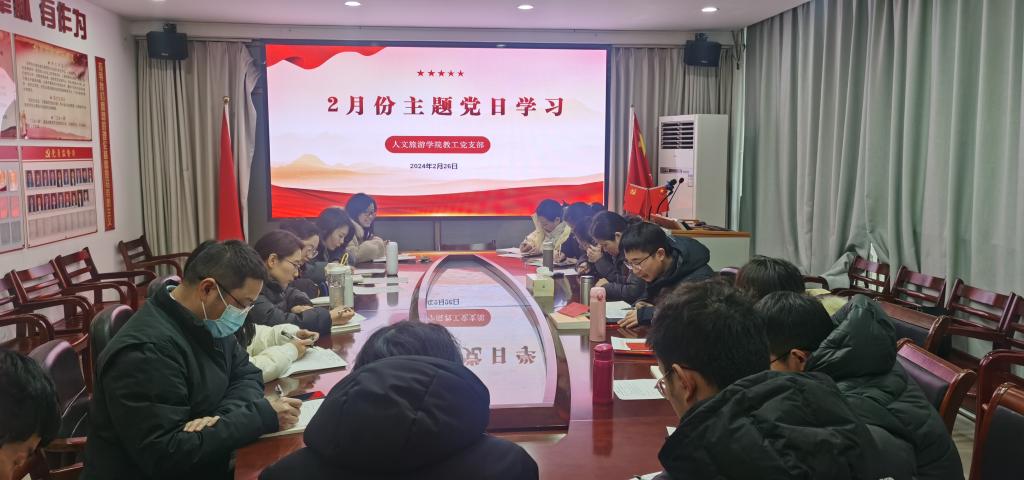 2月26日下午,人文旅游学院教工党支部在人文旅游学院会议室开展主题党日学习活动,学习主题为:学思践悟勇争先,感恩奋进开新局。
