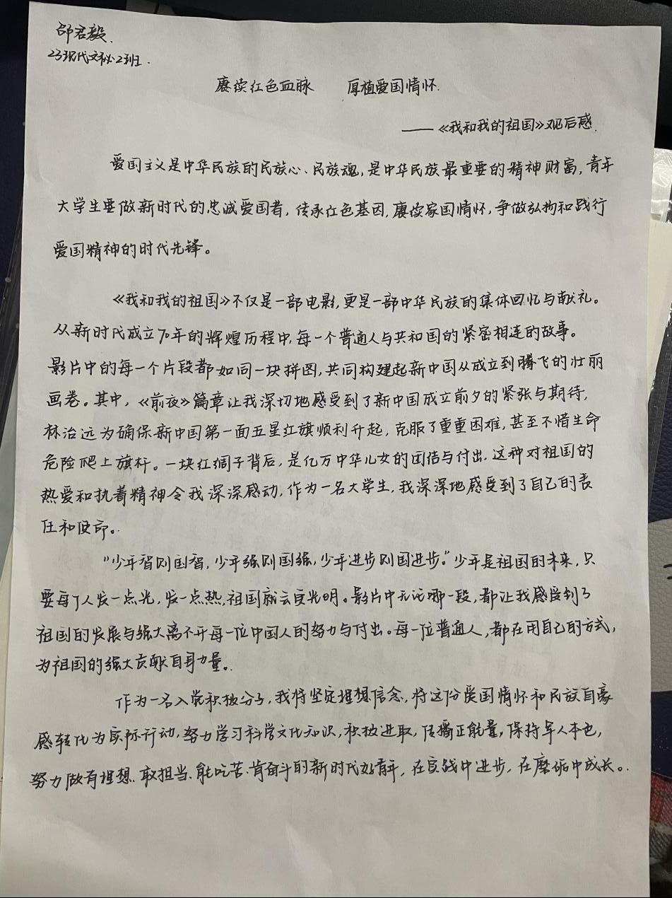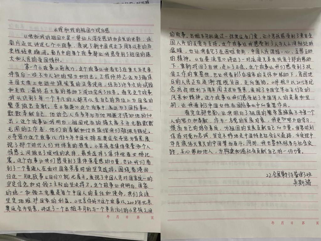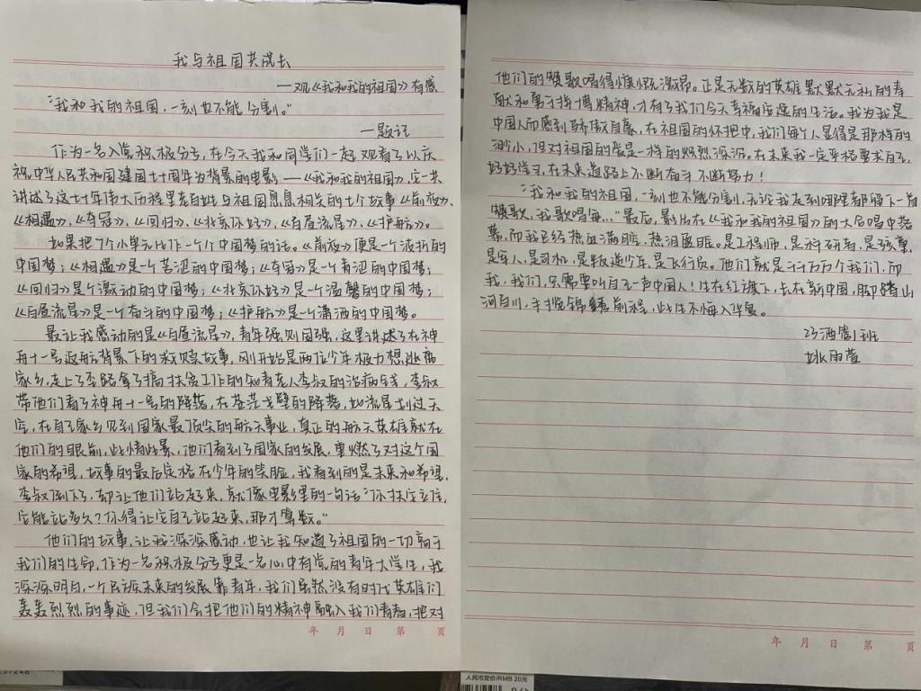 观影现场气氛热烈,同学们聚精会神地观看着影片。当银幕上呈现出开国大典的盛况、第一颗原子弹爆炸成功的激动时刻、中国女排夺得奥运会冠军的喜悦瞬间,以及香港回归、北京奥运会举办等历史性时刻时,现场同学们纷纷拿出纸笔记录自己此时此刻的感悟。