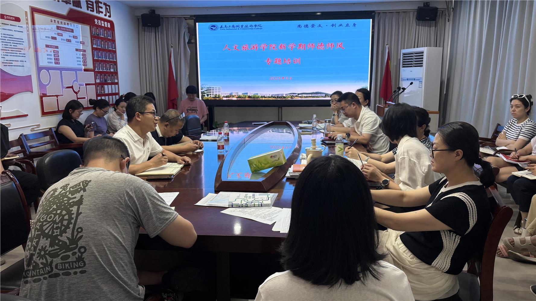 为进一步加强学院教师队伍建设,弘扬高尚师德,营造风清气正的育人环境,近日,人文旅游学院隆重召开了新学年师德师风专题学习会。学院全体教职员工齐聚一堂,共同参与了本次具有重要意义的学习活动。