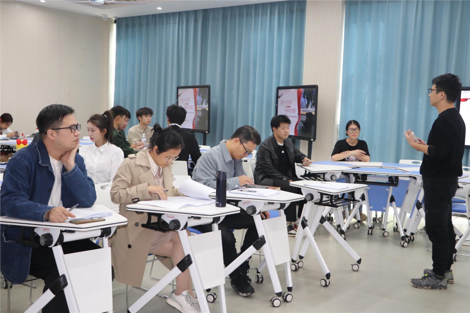 2024年10月23日下午,人文旅游学院在望道楼201室举办职业生涯规划大赛。本次学院比赛设有选拔赛和决赛,共有10支队伍进入决赛,学院学生工作负责人、学工办主任和辅导员出席决赛。