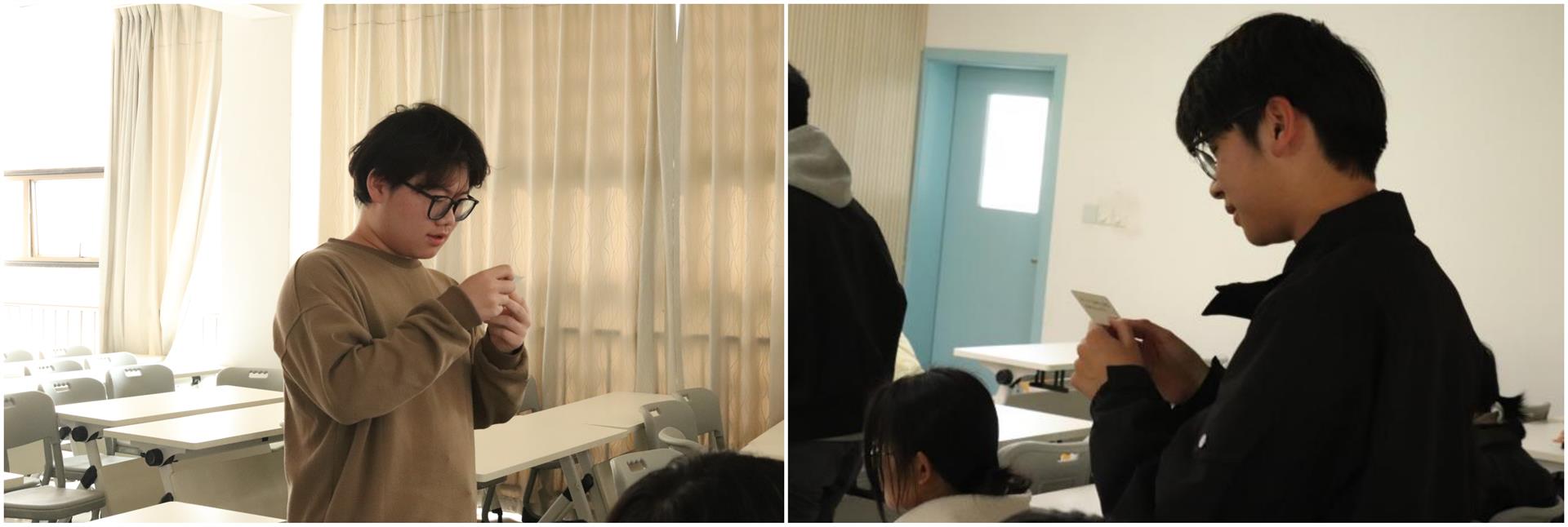 活动在轻松活泼的“数字炸弹升级版”游戏中拉开序幕。同学们在1至100的数字范围内展开竞猜,现场气氛紧张而热烈。猜中“炸弹”数字的同学需抽取“学风任务卡”,即时分享一项实用的学习技巧或心得。这一环节不仅调动了全场的参与热情,也在欢声笑语中促进了学习经验的交流。