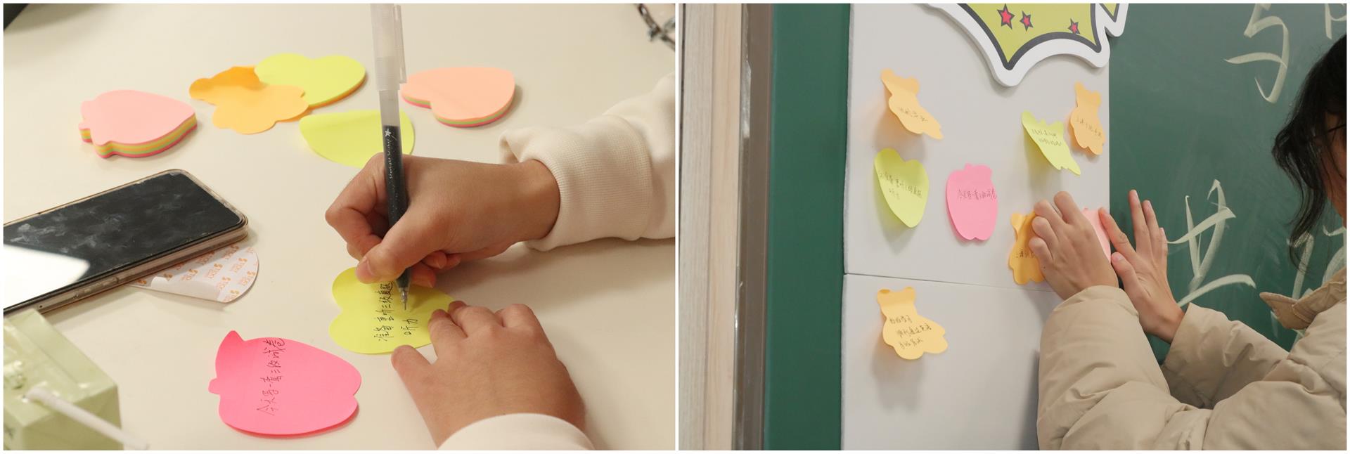 随后的“知识灯谜竞”环节,同学们四人一组展开团队协作,限时解答涵盖专业知识、传统文化、生活常识等内容的灯谜。各小组积极讨论、集思广益,在思维碰撞中既巩固了知识,也锻炼了协作能力。活动现场还设置了“学习目标承诺墙”,同学们认真写下近期具体、可衡量的学习目标,并郑重贴在承诺墙上,通过公开承诺的方式强化自我监督与责任意识。