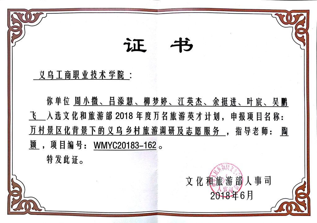 文化旅游部“万名旅游英才计划” |