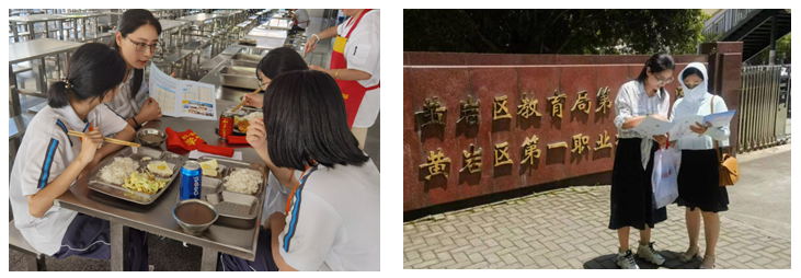 黄岩区第一职业技术学校拥有在校学生3000余人,学校通过了“省级示范实训基地”的评审,并建有“国家高技能人才培训基地”、“国家职业技能鉴定站”,是一所园林式、数字化、生态型的现代化校园,为学生的成长、成才提供了良好的环境。人文旅游学院教师利用考生返校高峰期深入教室、食堂等公共场所向考生开展宣传工作。