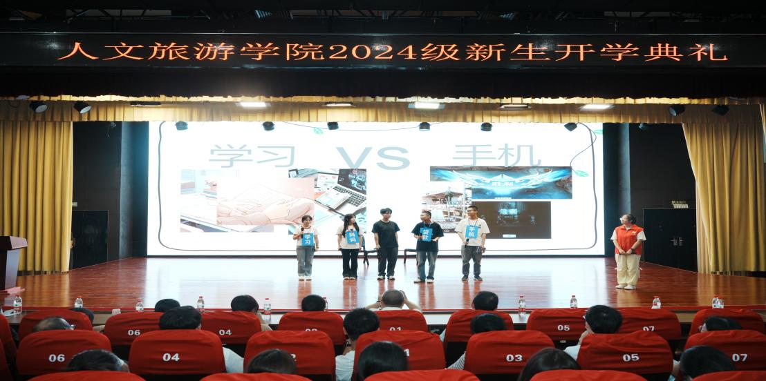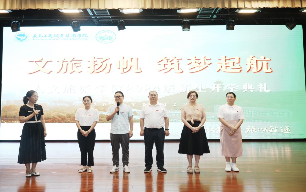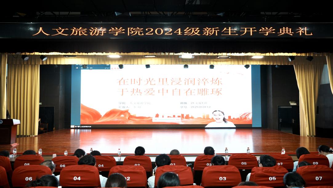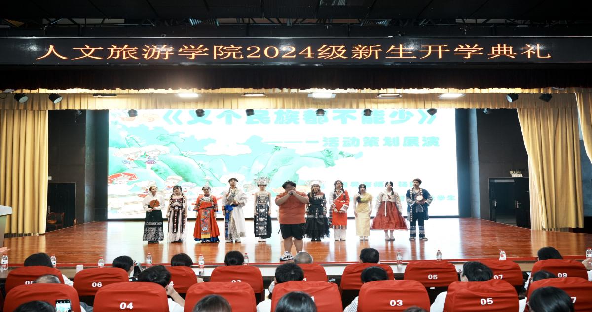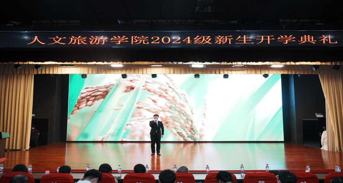 9月12日晚,人文旅游学院2024级新生开学典礼暨专业技能展示活动在丹溪文化厅隆重举行,学院领导班子成员、专业负责人、全体辅导员、新生班主任及学院2024级全体新生参加。