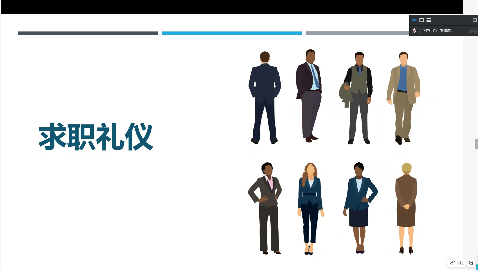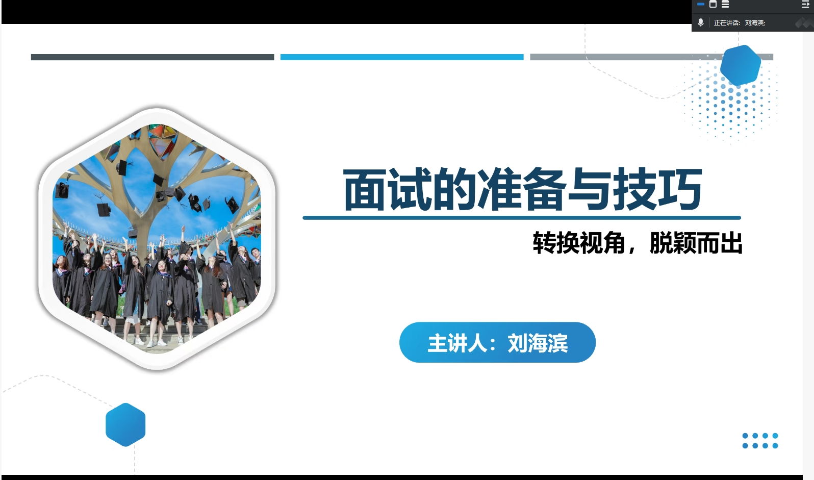 本次讲座围绕六大核心模块系统展开。刘海滨教授首先通过企业招聘实例解析了结构化面试、半结构化面试及无领导小组讨论等常见面试形式的特点,对比不同面试类型的考察侧重点。在剖析面试全流程时,他特别强调"3分钟黄金法则",建议毕业生从简历投递到终面环节都要建立系统性准备思维。