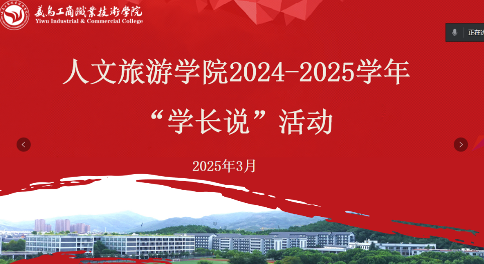为充分发挥优秀校友的榜样引领作用,助力在校生科学规划学业与职业发展,人文旅游学院近期举办2025年“学长说”主题分享活动。本次活动通过腾讯会议平台邀请国家奖学金获得者与百余名师生在线分享成长经验,共话青春奋斗故事。