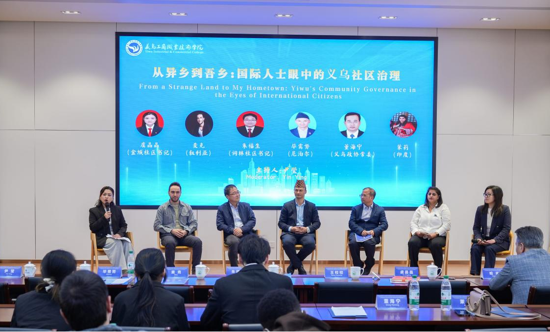 在第三阶段的圆桌会议上,与会嘉宾围绕“从异乡到吾乡——国际人士眼中的义乌社区治理”这一主题展开交流。来自尼泊尔、叙利亚、印度等国的商人代表分享了他们在义乌创业、生活与融入的个人故事。金城社区党委书记虞晶晶、词林社区党委书记朱福生结合所在国际社区的治理实践,与社会工作专家一道,围绕居住体验、文化融合等议题参与了深度交流。