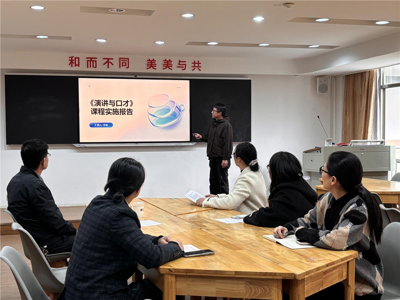 活动中,胡艳、辛岛两位老师分别就《国学经典选读》与《演讲与口才》两门课程进行了“说课程”展示。两位教师从对接职业场景与素养需求、重构模块化教学内容与能力培养路径、探索智能技术与教学融合创新三个维度展开了详细阐述。
