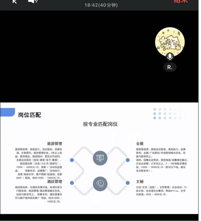 本次宣讲会是我院促进学生高质量就业的关键举措,不仅为学生与文旅企业搭建了直接沟通的桥梁,更帮助同学们清晰把握文旅行业的发展动态与岗位能力要求,为后续就业求职和职业规划提供了精准指引。