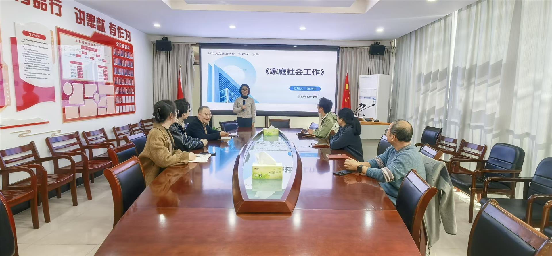 为扎实推进教学内涵建设,提升课堂教学质量与人才培养成效,12月10日,人文旅游学院社会工作专业开展“说课程、说课堂”专项教研活动,围绕课程建设与课堂实施开展深入交流。社会工作专业全体教师参与本次活动。