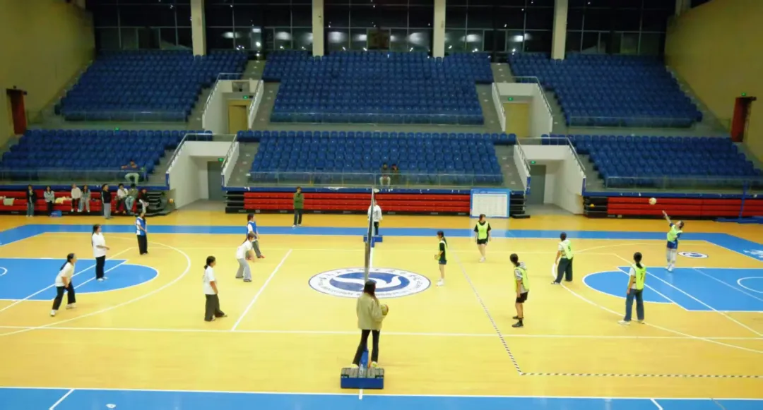 午后的阳光透过体育馆玻璃,在木地板上织就斑驳光影,人文旅游学院女生排球赛的决赛哨声在此刻划破空气。红色球衣的“文旅先锋队”与蓝色球衣的“博雅队”隔网相对,队员们屈膝凝神,手腕上的护腕随着热身动作轻轻晃动,眼神里满是对胜利的渴望。